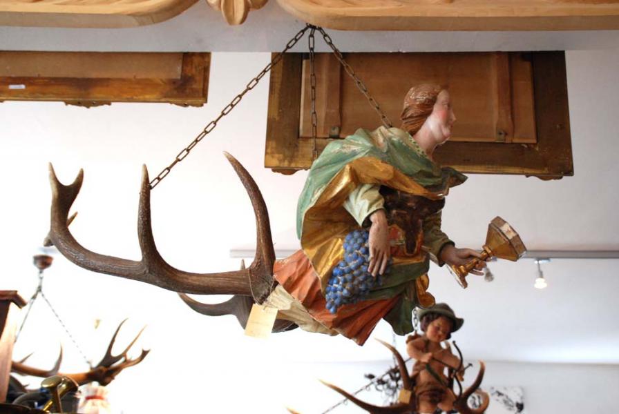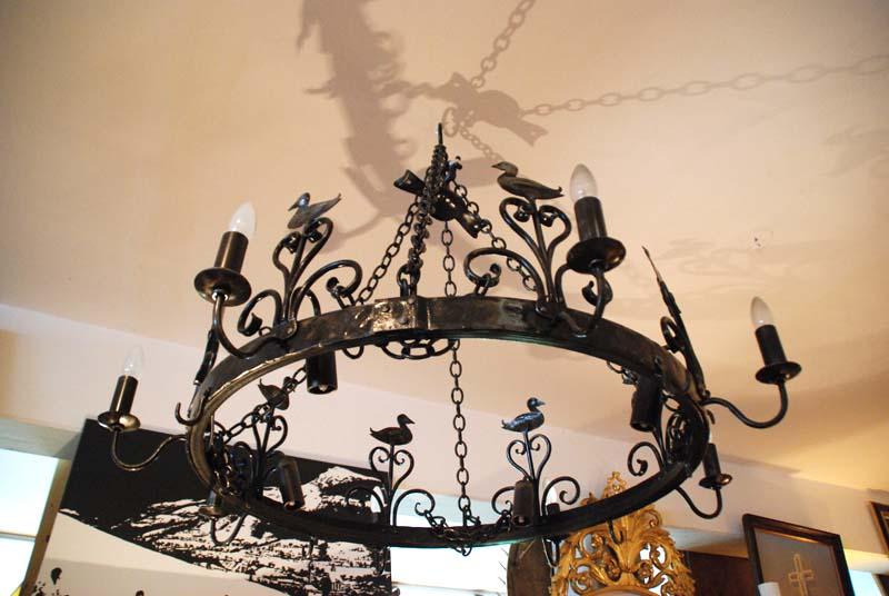 - Luster - aus Eisen, Hirschgeweih, Glas und Holz