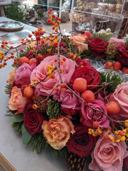 Gesteck winterlich in Rosa